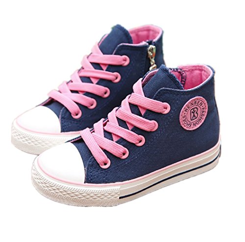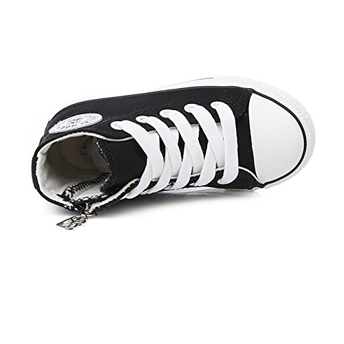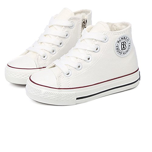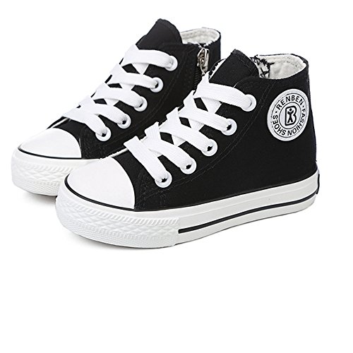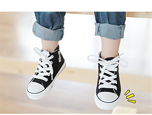-. Feature : Qualified Material: Canvas shoes are made of excellent canvas, textile interior material, upper contrast cross shoelace and bottom rubber soles / Easy Try On: A fashion zipper on one side helps kids easier to wear by themselves / Soft and Safe: Soft insole texture keeps you feet comfortable. Washable, Durable, anti-slip and breathable provide kids more protection / Fashion Design: Classic fashion high-top sneakers with lace up closure can match all stylish clothes / Wonderful Gift Idea: The canvas shoes are suitable for boys and girls, little kids, Toddler. They are are ideal for Birthday Gift/holiday present, etc