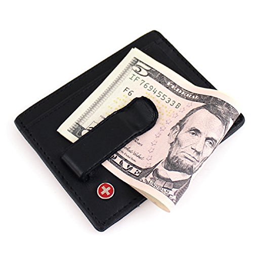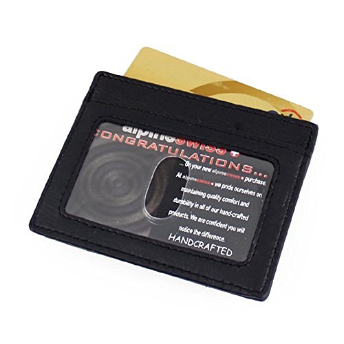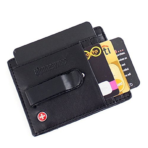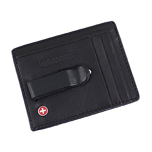 -. Title : Alpine Swiss マネークリップ付きカードケース パスケース(定期入れ)付 ブラック 牛革(レザー) Money Clip 固定式 スイス国旗 並行輸入品