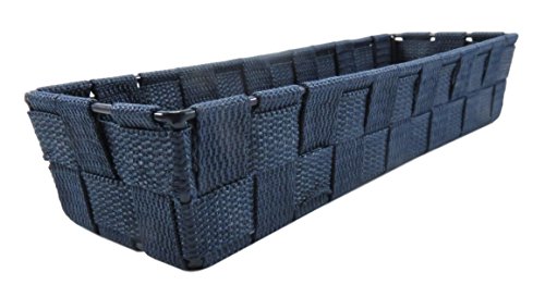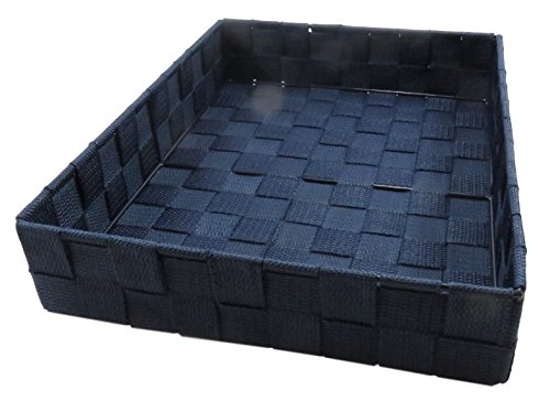 - THE SPECIFICS: Bundle of 4: woven, navy blue letter tray measuring 12.5" x 9.5"; a rectangular pencil holder 10.25" x 3.5"; two pencil holders 4.5" x 3.5" (large) and 3.5" x 3" (small). Folder, envelope, note pads, stapler, pens and colored pencils are for demonstration purposes only and not included.