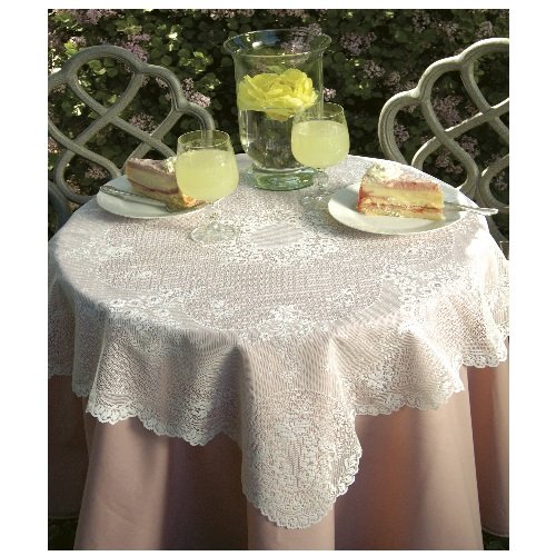 Heritage Lace Floret 36-Inch by 36-Inch Table Topper, White