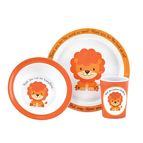(Dicksons)/Kitchen Dining/Tableware/DIRECT FROM USA/Cute Little Lion God is Great Orange 9.5 x 9 Melamine Plate, Bowl and Cup Set of 3