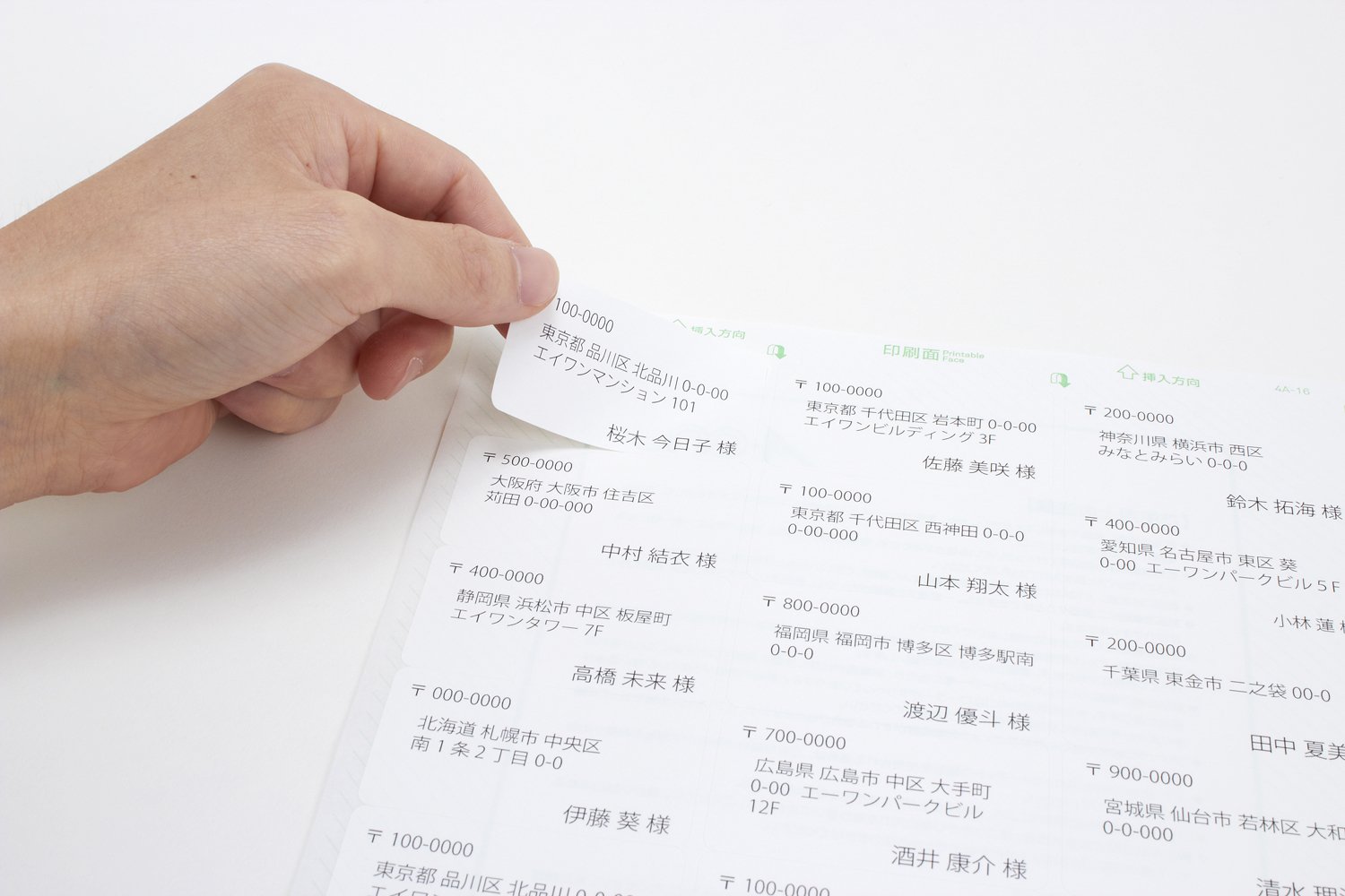 マット紙・ホワイト/材質:上質紙/標準総厚み:120g/㎡(0.13mm)/ラベル厚み:0.07mm A4判 24面 四辺余白付 角丸/シートサイズ:A4判(210mm×297mm)/ラベルサイズ:33.86mm×64mm(3列×8段) 対応プリンタ:インクジェット(染料+顔料) レーザー コピー機 熱転写 ドットインパクト 手書き