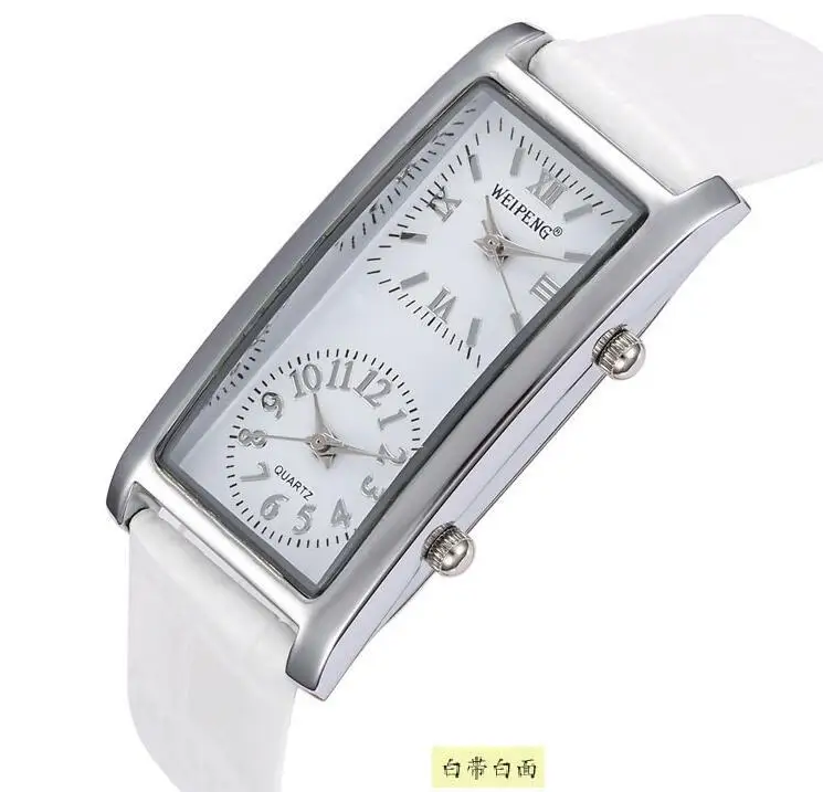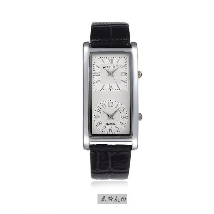 New 2 Dual Time Zone quartz Black Faux Leather Women Wrist Watch Nice Gift luxury timepiece