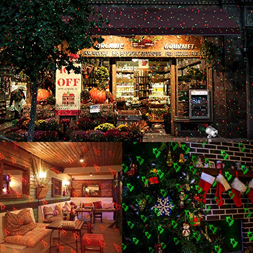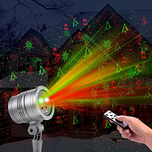Christmas Laser Lights, Outdoor Projector lights by Clustars,Snowflake/Jingling Bell/Xmas Tree/Santa Claus/RG Stars with Remote Control for Xmas,Halloween,Party(1-Pack)
