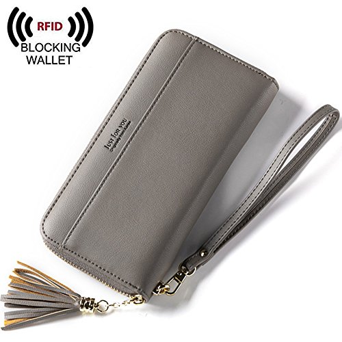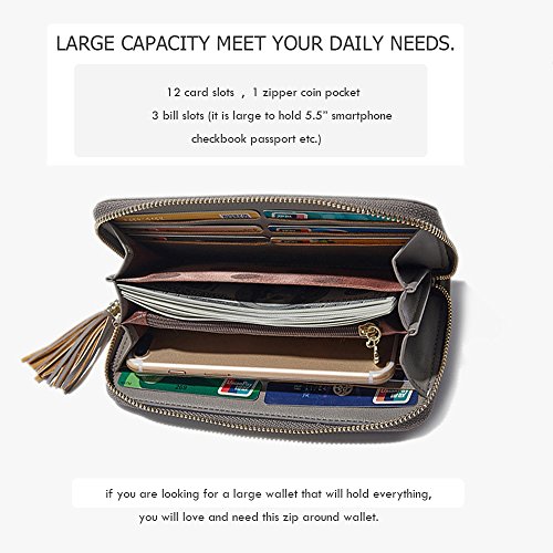 Womens RFID Blocking Soft PU Leather Zip Around Long Wallet Card Holder Phone Wallet