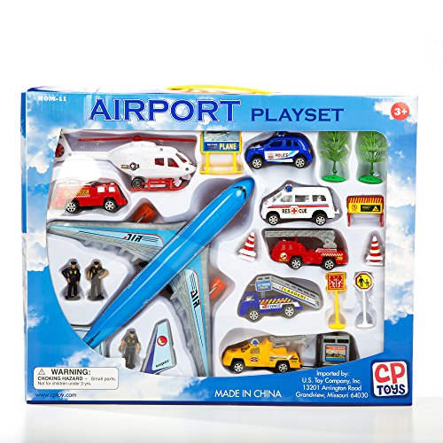 -. Feature : GET OFF THE GROUND: This playset is perfect for children who love flying and children with flight anxiety alike. Kids who love airplanes can bring all the fun into their own living room, while other kids can develop comfortable familiarity with the aircrafts, helping everyone prepare for take off! Get your child to spread their wings today! / ACCESSORIES INCLUDED: You're child is a boarding pass from having everything their need for an authentic airline experience. They get an airplane, helicopter, and four separate official vehicles you would find at an airport. Tre are even road cones, signs, people, and trees so they can turn the living room into a runway replica. / ENCOURAGE IMAGINATION: Pretend play is essential for a child's development, inspiring and expanding their imagination. This playset allows children to create a world all their own with set ups and scenarios that you've never seen before. Their creativity, and the sky, are the only limits with this airport and vehicle playset. / CONSTRUCTIVE PLAYTHINGS QUALITY: Constructive Playthings began in the 1950's when founder Frances Klein recognized a need for quality educational resources for educators. CP Toys offers a vast selection of educational toys that one would typically not find in a brick-and-mortar toy store, offering children an experience that is both educational and fun. / PRODUCT SPECIFICATIONS: Package contains (1) CP Toys Airport Playset with Vehicles and Accessories. 24 piece playset. Includes 1 helicopter, 1 mega airplane, 3 action figures, 6 vehicles, 13 accessories. Airplane measures 12.5 " L x 11 " W x 2.75" H.; Helicopter measures 7" L x 2 " W x 3 " H.; Police vehicle measures 3 " L x 1.5" W x 1.5" H. Ages 3 yrs.+