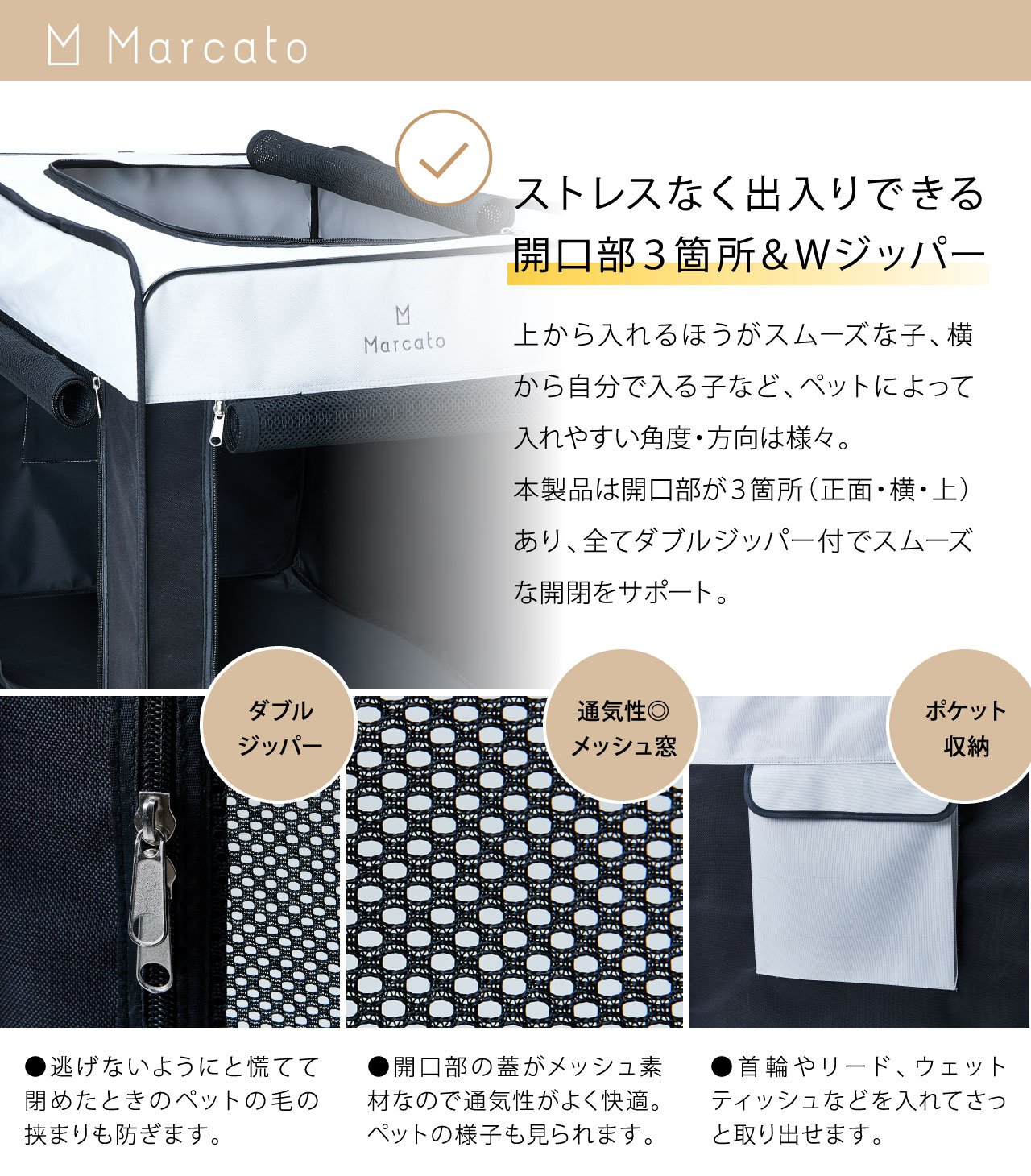 【開口部3箇所】【メッシュ窓】【ダブルジッパー付】開口部は3箇所。その子が好む方向から入ることができるのでペットの負担を軽減。開口部にはメッシュ生地を採用しましたので、通気性がよく中のペットの様子をしっかりケアしてあげることが可能です。ダブルジッパーは、二つのジッパーを調整しながらペットを中に誘導できるので便利です。