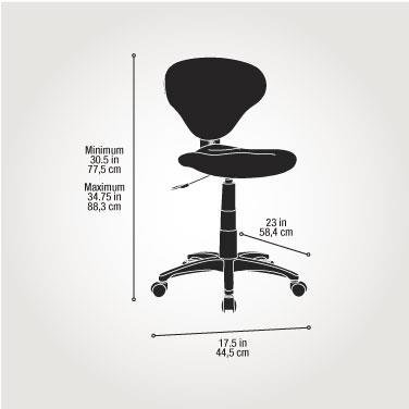 -. Feature : Contoured, fabric seat and black back / Pneumatic gas height adjustment / Features full 360-degree swivel chair / 5-star arched nylon base with twin casters for easy mobility / Dimensions: 17.5W x 23D x 34.75H inches