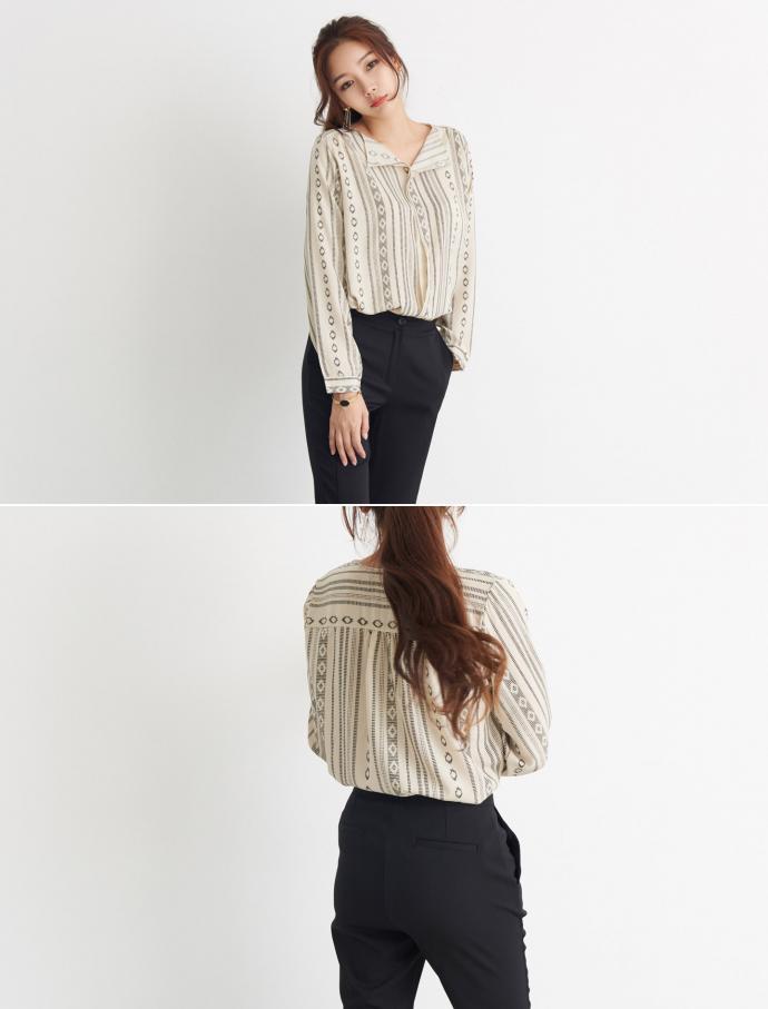 Point Ethnic Autumn Blouse Natural Fit Unique Style Daily Vintage Noodle Fashion