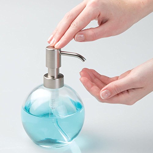 InterDesign Forma Glass Liquid Soap & Lotion Dispenser Pump for Kitchen or Bathroom Countertops, Clear/Brushed Nickel