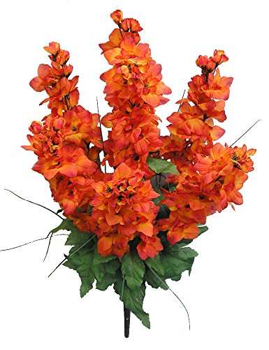 Admired By Nature Artificial Full Blooming Delphinium Flowers, Flower Buds & Greenery for Home, Wedding, Restaurant & Office Decoration Arrangement, Orange, 7 Stems (4 Pieces)