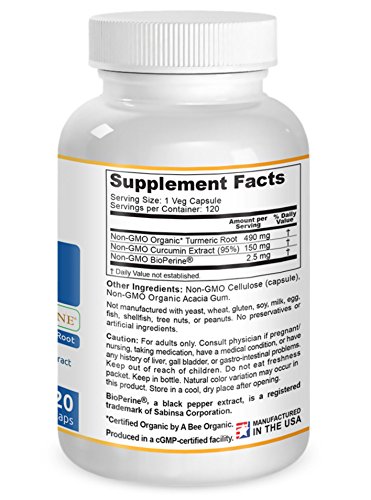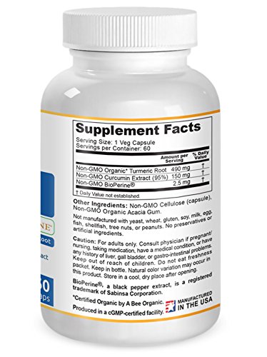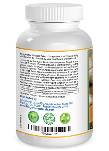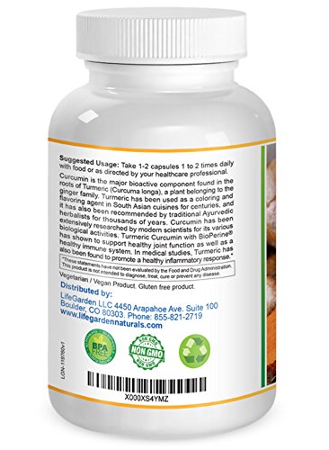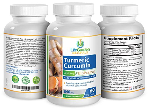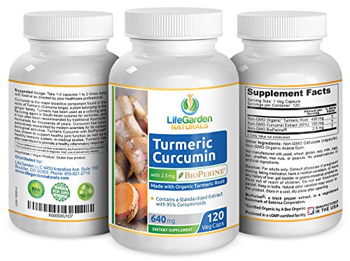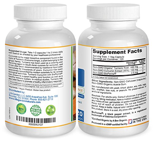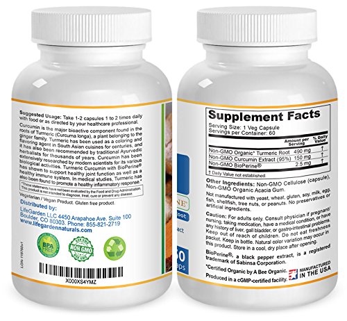 -. Title : Turmeric Curcumin with BioPerine - Contains Organic Turmeric Root and 95% Standardized Curcuminoids by LifeGarden Naturals. All Natural Non GMO Veggie Capsules.