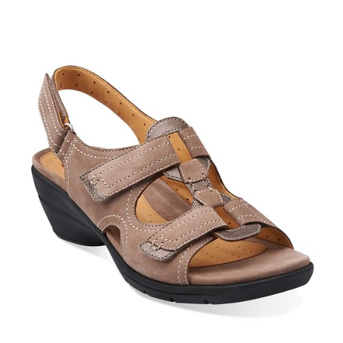Wedge sandal featuring O-shape rings at vamp and hook-and-loop straps