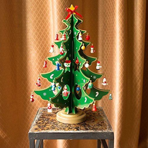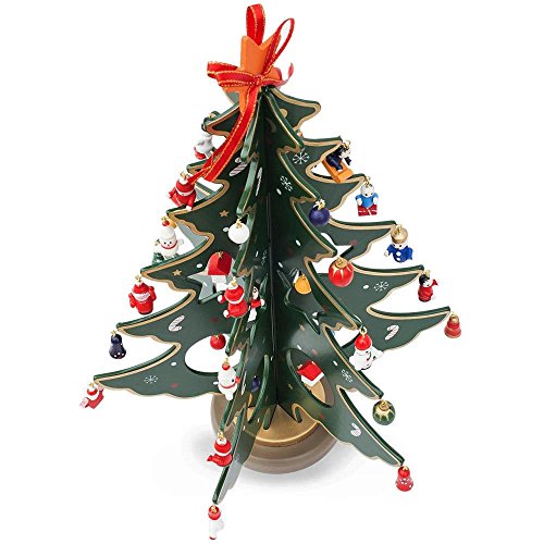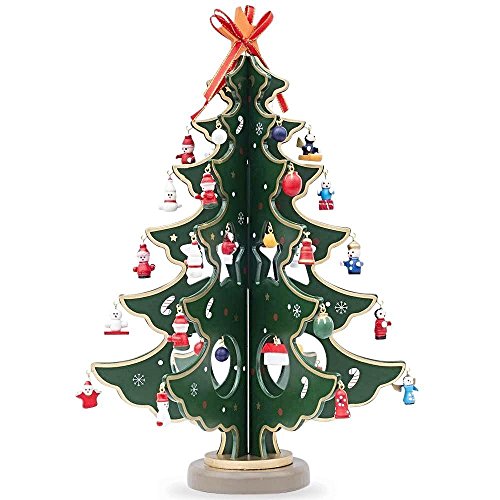 12.5" Wooden Tabletop Christmas Tree with 32 Miniature Christmas Ornaments