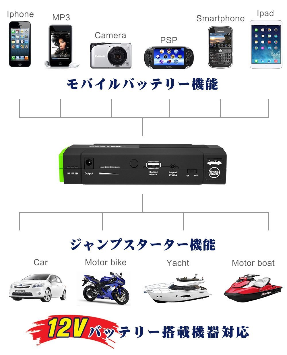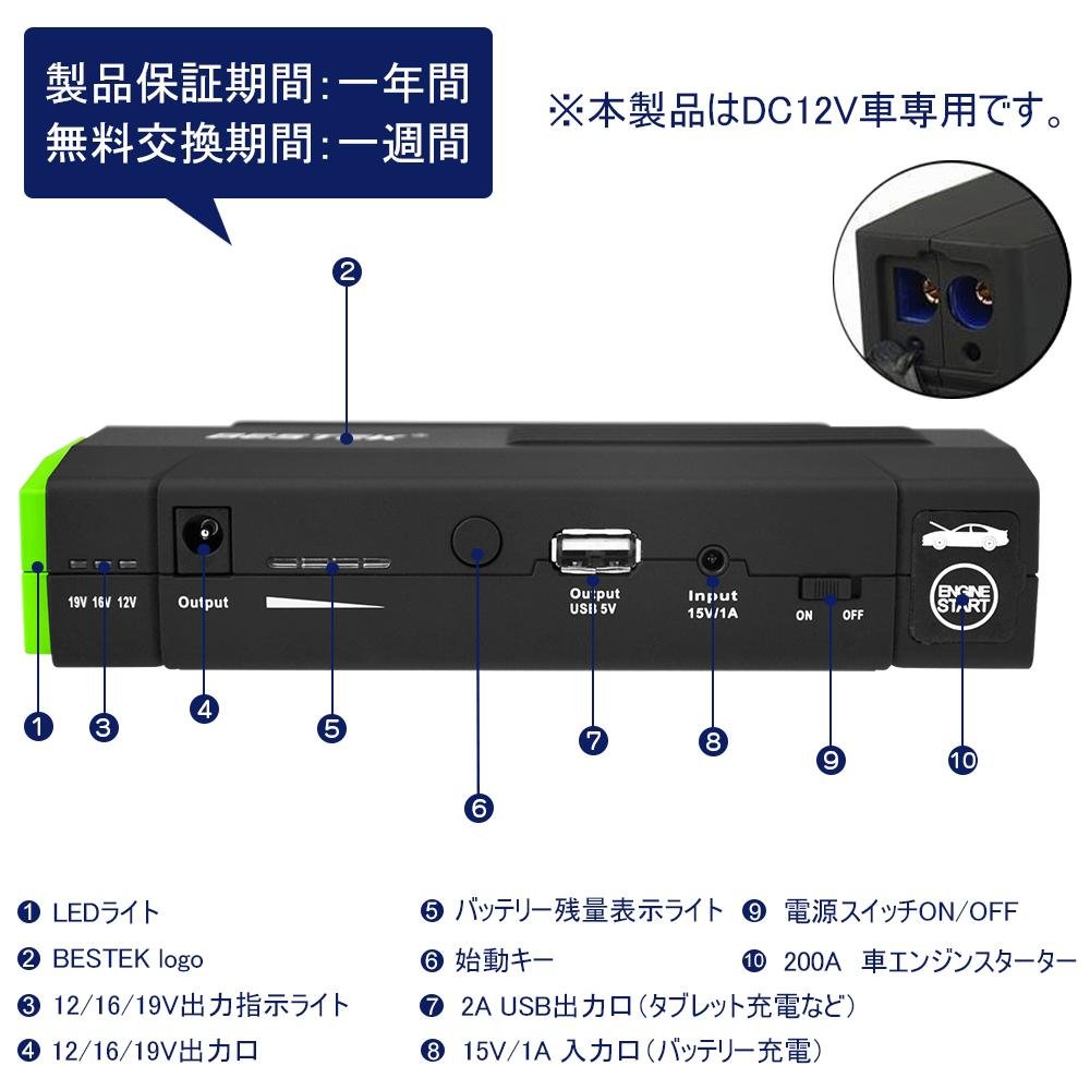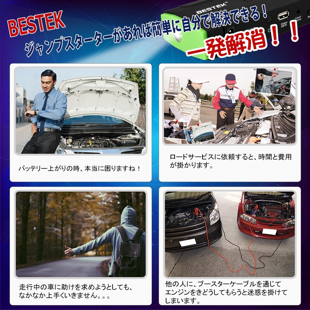 BESTEK jump starter 12V car engine starter 13600mAh output 5V / 12V / 19V