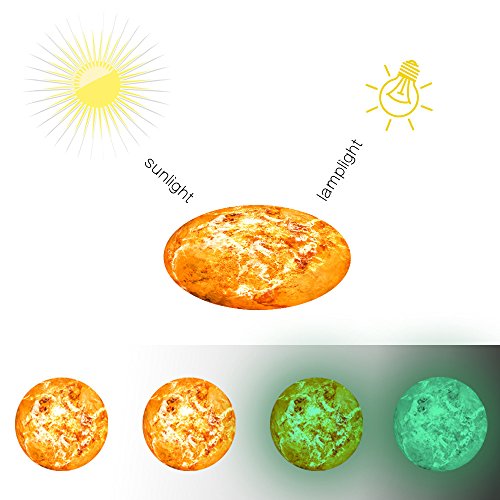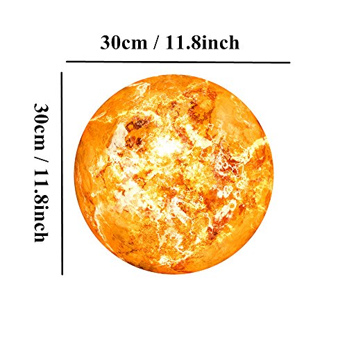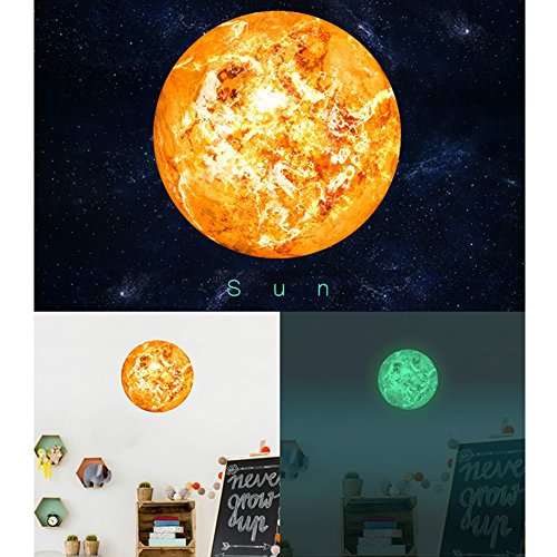 Pawaca Creative 30cm 7 Planets Glow in the Dark Wall or Ceiling Stickers, Luminous Stickers Removable Adhesive Walls Decal Art Mural for Kids' Room (Sun)