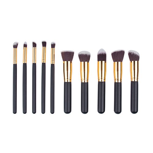 10Pcs Makeup Brush Set Beauty Cosmetics Foundation Brush Eyliner Blending Brushes Make up Brushes Kit (Black Gold)