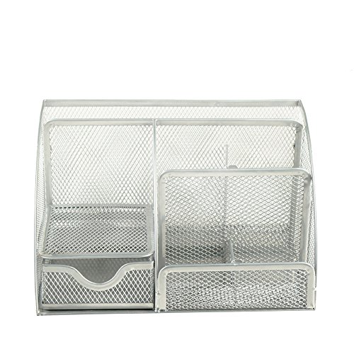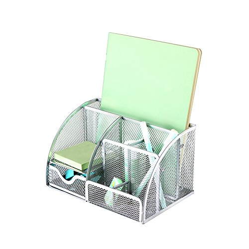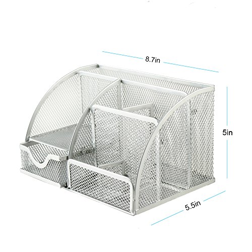 - ◆.Multiple Space for Everything : 6 compartment (5 parts + 1 slide drawer) mesh desk organizer with well-thought out dimensions