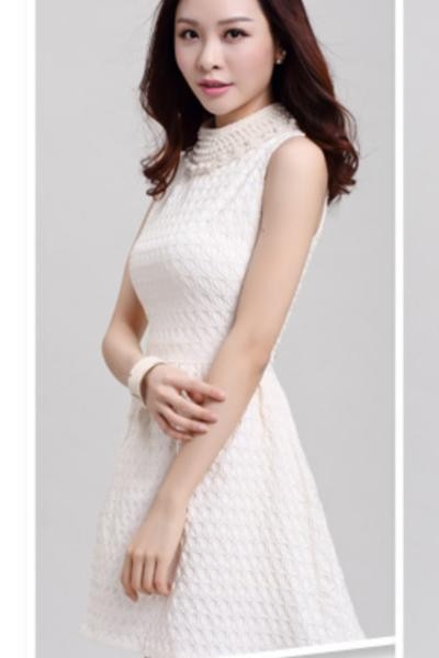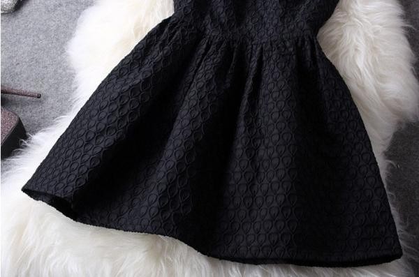 エレガント 型押しビジュー ノースリブ ミニドレスワンピース ブラック/L