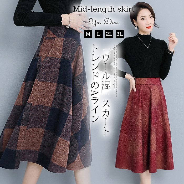 スカート チェック柄 ロングスカート Aライン レディース フレアスカート ロング丈 スカート ミモレ丈 ウール混 秋 冬 厚手 スカート レディースボトムス ウール混スカート 秋スカート 冬スカート キレイめ チェック柄スカート オシャレ コーデ 着痩せ 通勤 オフィス 30代 40代 50代 60代 ファション ママ 母親 おしゃれ★素材:ポリエステル★裏地:あり★生産国:中国柔軟度:柔らかめ★カラー:ブルー 赤※お客様ご使用のPC環境により商品画像のカラーが多少異なる場合があります。仕入時期により多少デザインなど異なる場合があります。ご了承ください。★サイズ(CM):M:ウエスト63cm 総丈75cmL:ウエスト67cm 総丈75cmXL:ウエスト70cm 総丈75cm2XL:ウエスト73cm 総丈75cm※サイズは人の手によって測っているため、1-3cmの誤差がある場合がございます。予めご了承下さいませ。