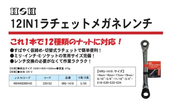 【商品名】(業務用5個セット) H&H 12in1 メガネレンチ/作業工具 【切替式ラチェット】 HRG-1419 〔DIY用品/大工道具〕