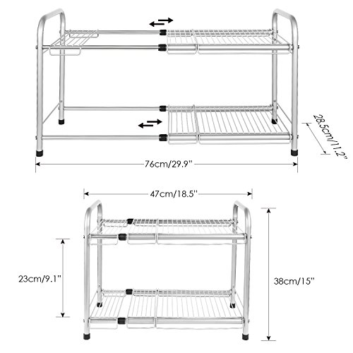 - 5.Stainless Steel Storage Rack Size: the retractable and expandable design,the length of this kitchen tableware holder can be adjustable from 18.1-29.9 inches.