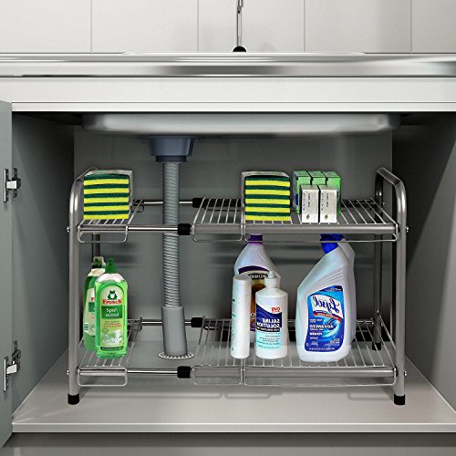 - 2.Multipurpose: remarkable multipurpose kitchen cabinet organizer, ideal for air-drying washed bowls, pot, fry pans, tableware, cookware, kitchenware and fragile glassware.it is also a perfect tool which cab be used as vegetable colander and prep works platform under the sink.