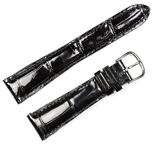 -. Title : Genuine Alligator Watch Band - Shiny Finish - Black 24mm - by deBeer
