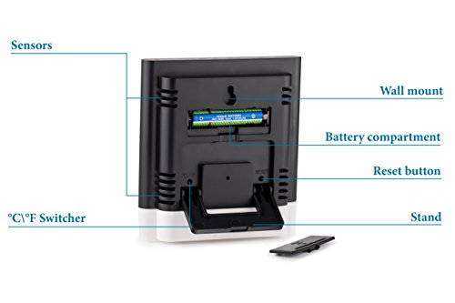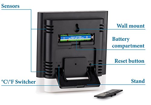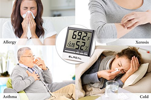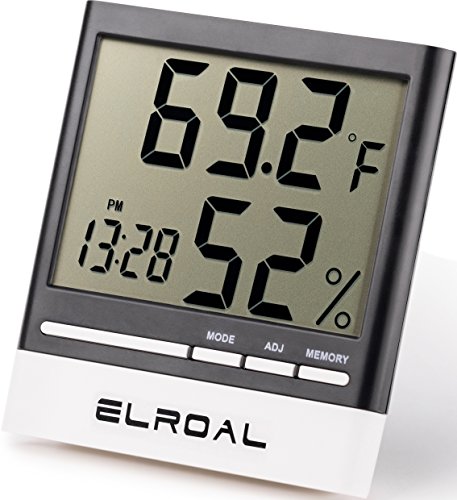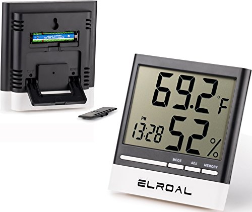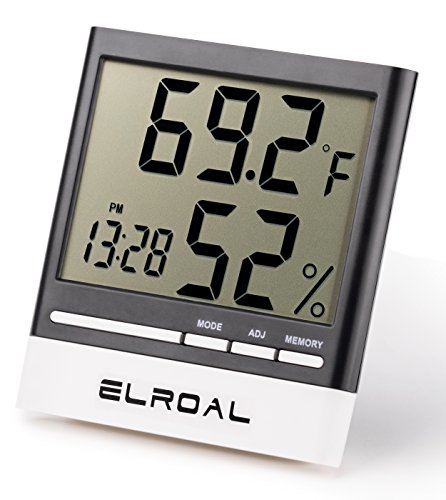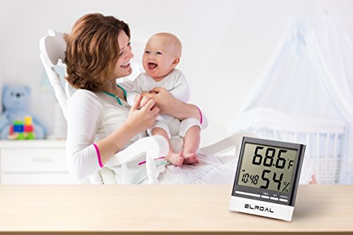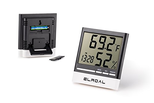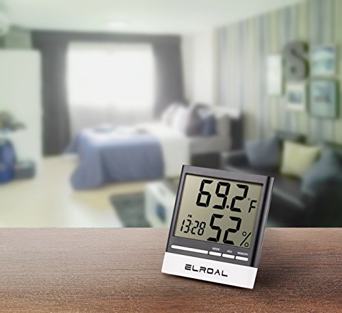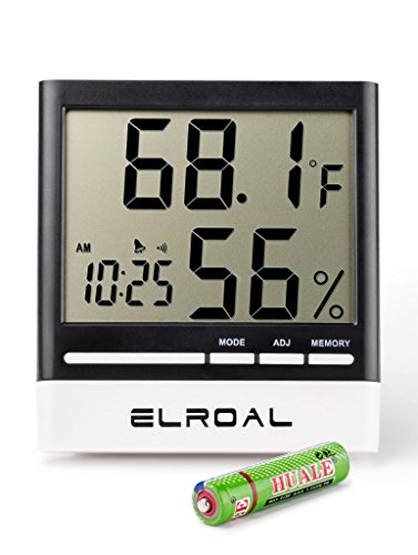 Studio : Elroal Publisher : Elroal Binding : Kitchen Product Description Descriptions We made an indoor thermometer of high-quality, durable materials so that you can easily and quickly determine the temperature and humidity in the room you need. Features Benefits: -A stylish, weightless design is used in the digital humidity monitor with Digital Alarm Clock. -A convenient and easy-to-use wall thermometer. -A large, multifunctional, informative digital humidity monitor, so you can get the information you need even from a distance. -Easy and quick for a couple of touches, the necessary information is displayed on the screen. -Indoor thermometer saves the minimum and maximum values of air temperature and humidity during the day. -Digital humidity gauge shows the exact time and conveniently set the alarm (every day / hourly alarm function). -A loud signal in the humidity meter, it will be heard even in the next room. -A very accurate sensor located in the hygrometer digital will help you to determine the temperature or humidity in the room to the tenth degree (percent). -A wide range of measurement of air temperature from 32F to 122F and air humidity from 10% to 99%. -The temperature and humidity indicators with the new wall thermometer are updated every 10 seconds. -Convenient fixings of room humidity monitor will allow quickly and easily install it on any surface in the room. Specifications: -Dimensions: 3.5inch (9cm) x 0.5inch (1.3cm) x 1.5inch (3.8cm). -Indoor Temperature range: -58˚F to 58˚F (-50˚C to 70˚C). -Humidity Range: 10% - 99% RH. -Temperature Display Resolution: 0.2 ° F (0.1 ° C). -Temp Accuracy: ± 2 ° F / ± 1 ° C. -Humidity Accuracy : ± 3% -Power Supply: 1.5V (AAA Size) x 1 0