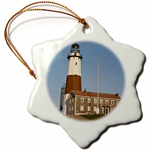 3dRose orn_93157_1 New York Montauk Point Lighthouse Walter Bibikow Snowflake Decorative Hanging Ornament, Porcelain, 3-Inch