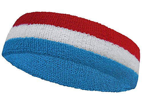-. Feature : Headband Size: Length 6.7 inch, Width 2 inch. / 1 unit includs 1 piece. / Fiber contents: 85% Cotton, 8% Elastic, 7% Nylon / How to wash: machine wash and dry (Hand wash recommended) / Style: 3 Color stripes; Comfortable; Absorbent cotton terry ; Pretty Stretchable.