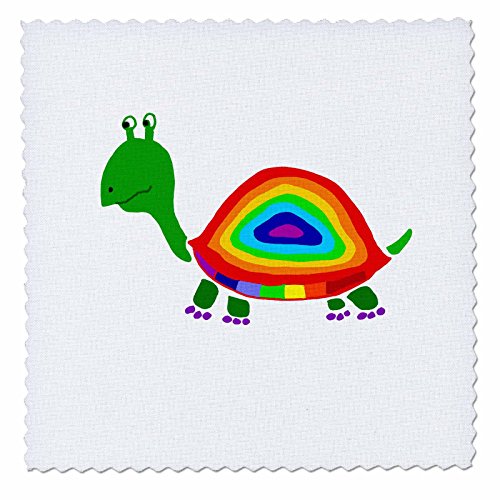 3dRose Funny Cute Turtle Has Rainbow Shell Abstract Art Quilt Square, 10 x 10"