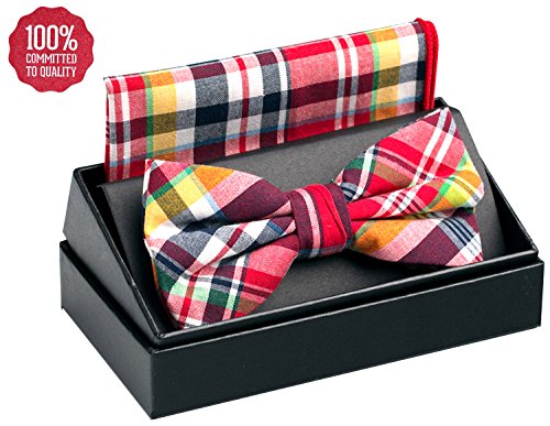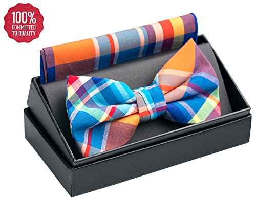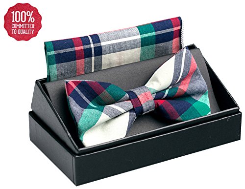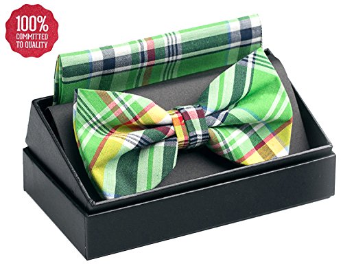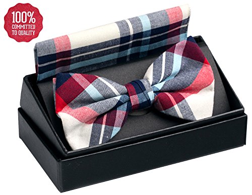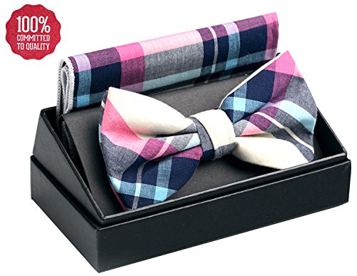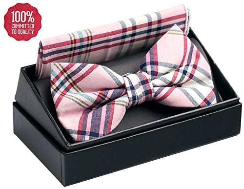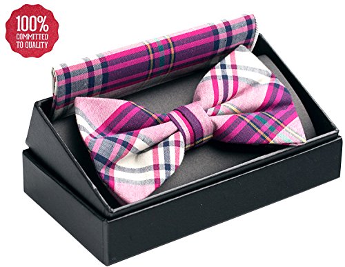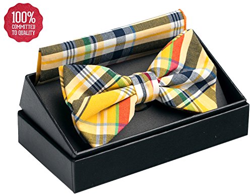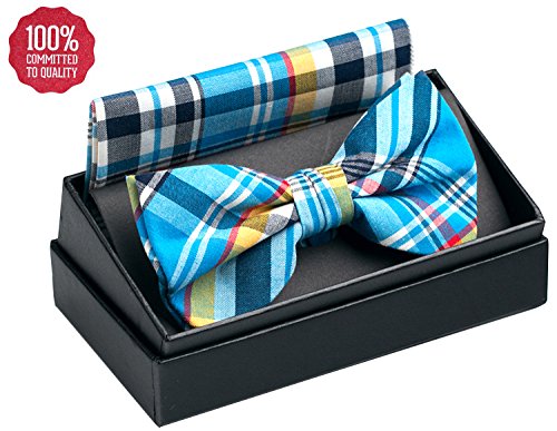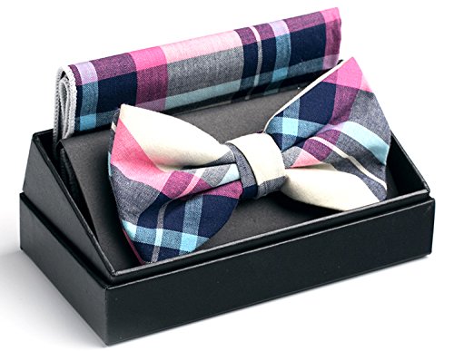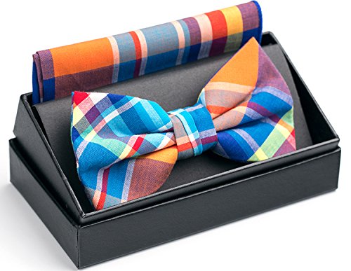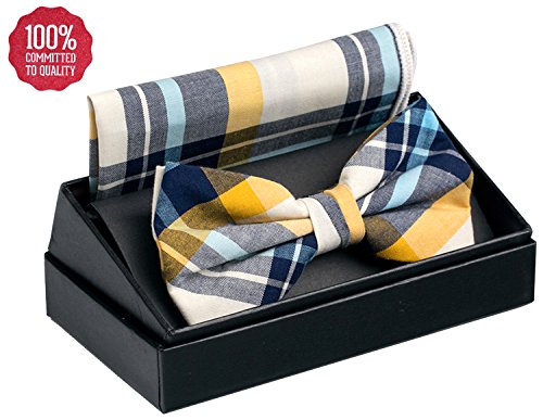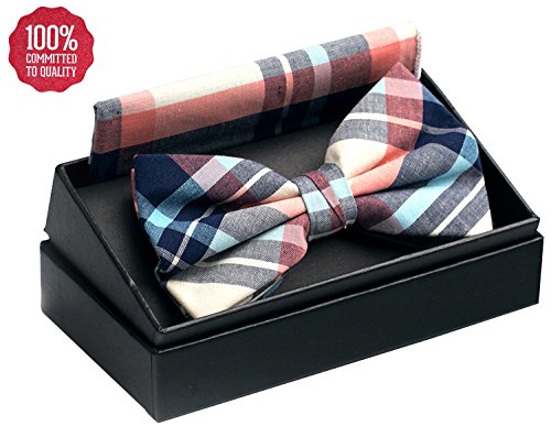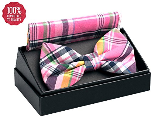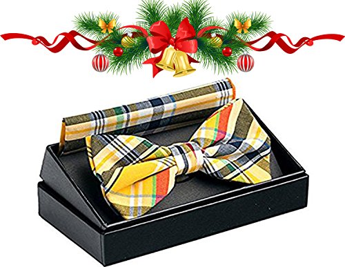 | OUMUS Adjustable Classical Men's Pre-Tied Bow Tie Pocket Square Set |