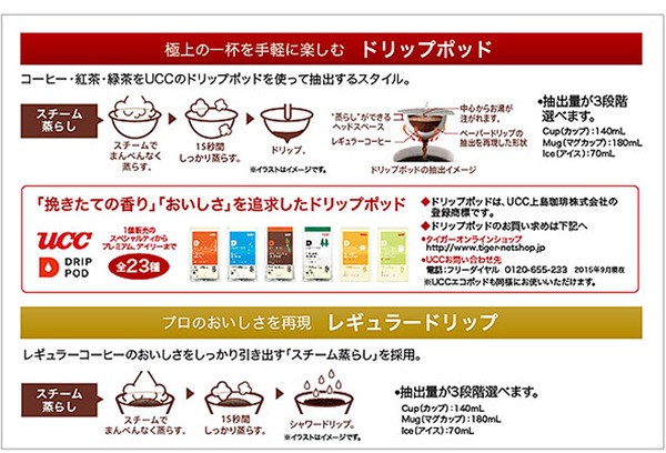 ●1、UCCの「ドリップポッド」と「レギュラードリップ」の2WAY●