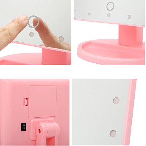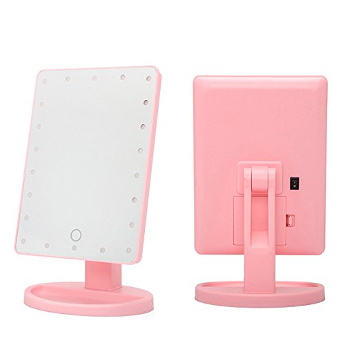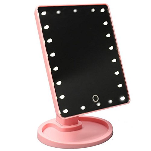 - 【LIGHTED MAKEUP MIRROR】The 22pcs built-in led lights makes a bright and soft white light, which gives your a perfect makeup.It is bright enough to allow you makeup in even dark night or light poor areas.The light is natural and does no harm to your eyes