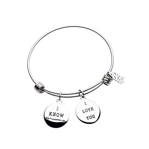 Women's Stainless Steel Star Wars Han Solo and Princess Leia "I love you. I know" Charm Expandable Bracelet. Licensed Jewelry Box Included. Dimension: 7 1/2" (Length) x 1/16" (Width) x 1/16" (Height). Kerry Fisher Bracelet - Memorial JewelryFeature