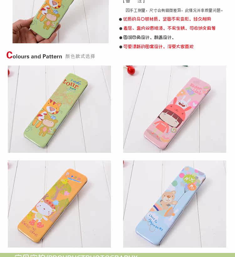 动物系列单层文具盒 大容量卡通可爱铅笔盒 韩国简约铁质收纳笔袋