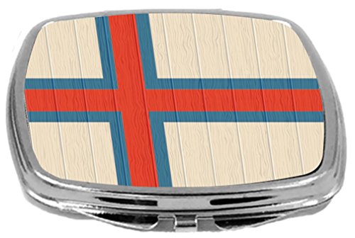 Rikki Knight Compact Mirror on Distressed Wood Design, Faroe Islands Flag, 3 Ounce