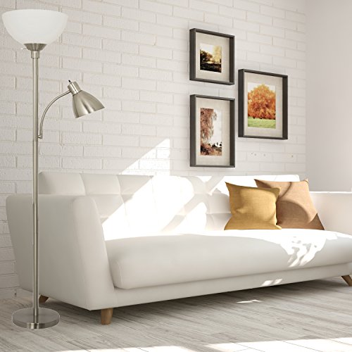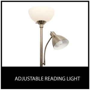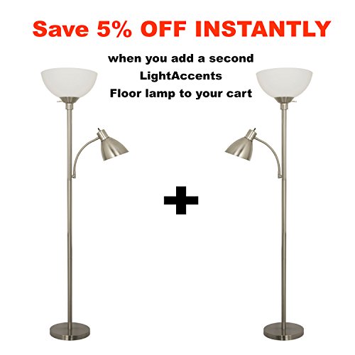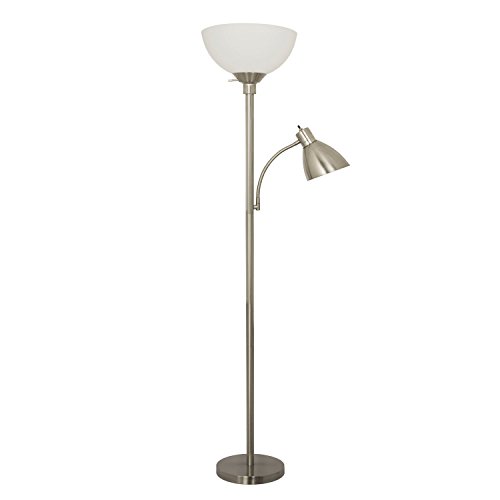 Light Accents 150 Watt Metal Floor Lamp with Side Reading Light (Satin Nickel)