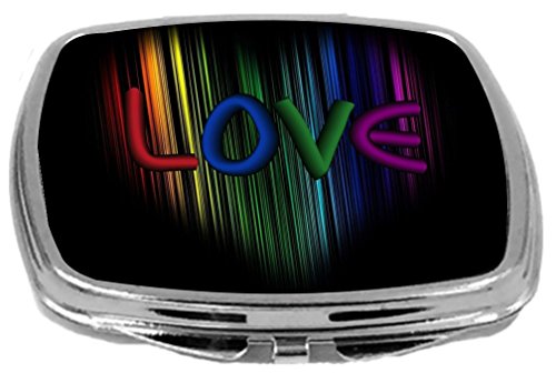 Rikki Knight Compact Mirror, Rainbow Love On Heart