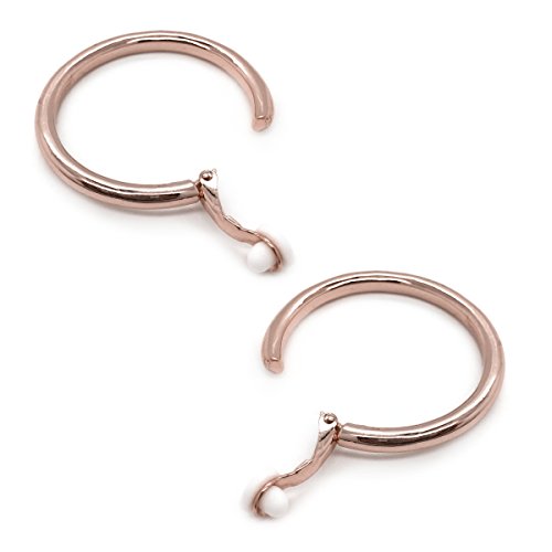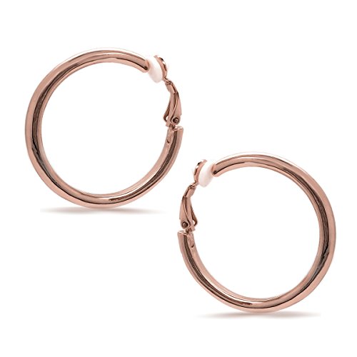 Made of rose gold plated alloy, these timeless earrings are featuring polished shiny tube design. Measures about 4mm wide with diameter of 1.25" and secured with clip on backings. Wear these chic hoops with your jeans for daytime or with a dress for a night out. These fashion clip on earrings will make the perfect choice for your special someone for Valentine's gift, Christmas gift, Mothers day gift, Birthday gift, Anniversary Gift, or Bridal party gifts.Feature