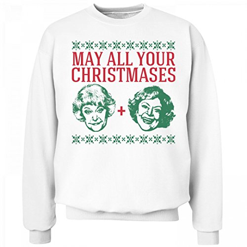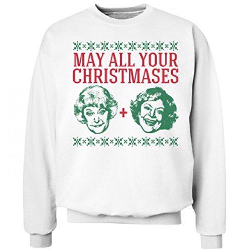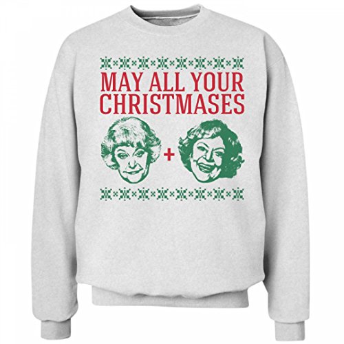 Binding : Apparel Product Description May all your Christmases Bea White! The Golden Girls are back this holiday season! Wear this funny Christmas pun sweatshirt that has their smiling faces on it. This low pill fleece sweatshirt from Hanes will look good wash after wash. 0