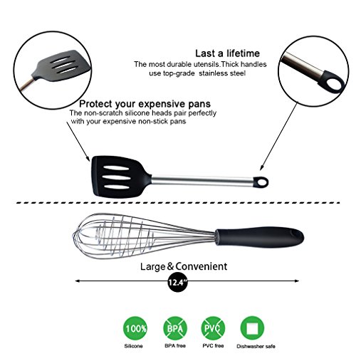 ✅【SAFE AND HEALTHY】100% Food Grade BPA and PVC free. This silicone kitchen utensils set is FDA approved, safe and environmental. Just enjoy your wonderful creative work in the kitchen!