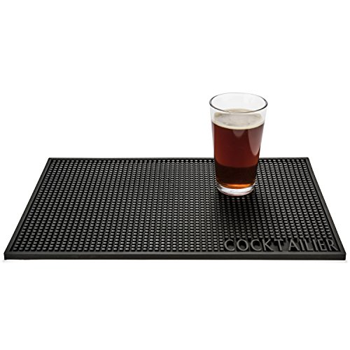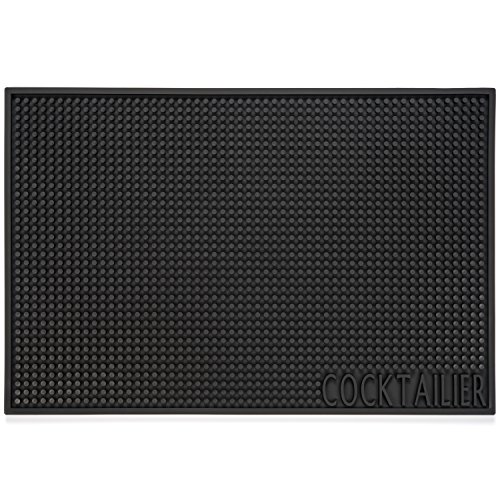If you are like us, then you enjoy having a good time. Launched in 2016 we are a small company based in Portland, OR. Cocktail Culture - We do what we can to further cocktail culture everywhere. Whether it be collaborating with other companies or just sharing a unique story, we hope you will join us in in our quest for great cocktails. Community - Cocktailier aims to make the world a smaller place through good libations and great products. Customer Service - Without customers we don't exist, and we know that the only way to win customers is through excellent customer service. We hope to provide you with an excellent selection of goods at an affordable price, and if there is something you aren't happy with, we will make it right, guaranteed. Bar Mat/Kitchen Drying Mat This heavy duty mat is versatile. Use it on your bar as a spill mat or in your kitchen to keep your counters from getting dirty and ruined from excess water exposure. These non-slip beauties are guaranteed to last. They are home dishwasher safe, but not suitable for industrial washers. If you wash them in a home dishwasher, we recommend taking it our immediately after the drying cycle and laying it flat on a dish towel. This will ensure the mat stays flat as dishwasher heat can cause the rubber to become more flexible and warp when it cools. Some warping on the edges may occur straight out of the packaging, but the mat should return back to flat soon after. Should it not go back to it's normal shape or if you forget to immediately take it out of the dishwasher, you can heat it up in the oven on a baking sheet at 200 degrees F for 5-10 minutes. Lay flat on a towel to cool. (Use caution with hot items.) 12" x 18" x 1/2" Solid Black
