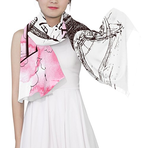 (ALAZA)/Accessories/Cold Weather Accessories/DIRECT FROM USA/Cooper girl Time For Travel Eiffel Tower Silk Scarf Shawl Wrap for Women Girls