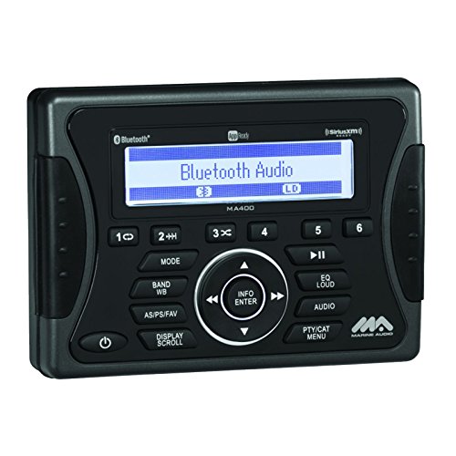 - RECEIVER: Its Bluetooth™ streaming audio (A2DP) and controls (AVRCP) let music lovers to listen to their personal tunes while relaxing on their boat. To further improve the music offerings of this stereo, the MA400 features an AM/FM electronic tuner, full iPod®/iPhone® controls and charging along with SiriusXM satellite radio for a diversity of radio channel options.