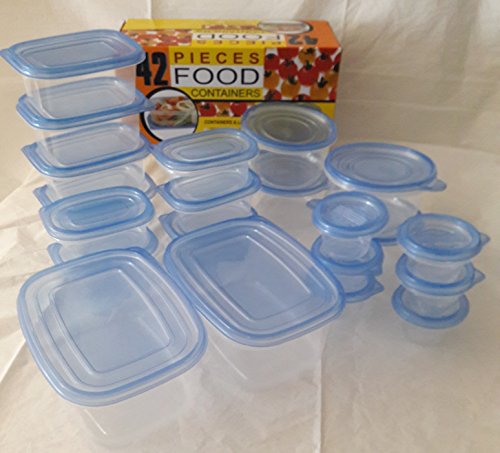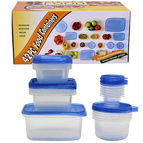 42PC PLASTIC STORAGE CONTAINER BPA FREE ASSORTED SIZES DISHWASHER, FREEZER AND MICROWAVE SAFE