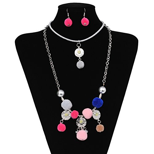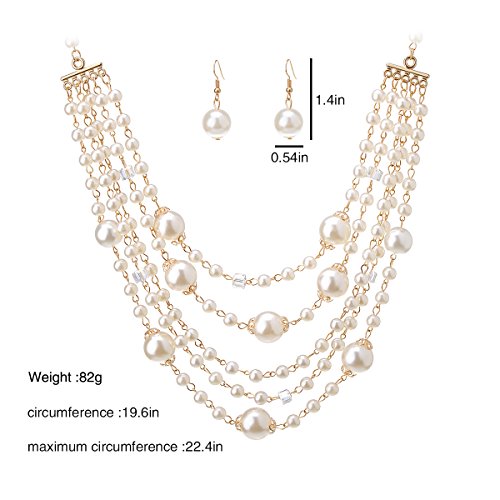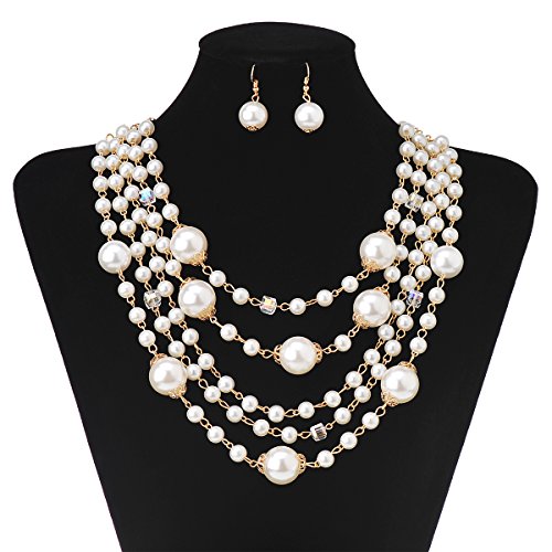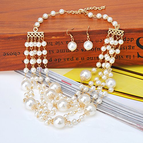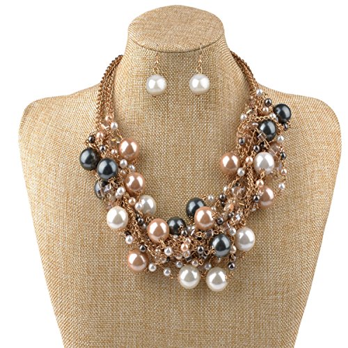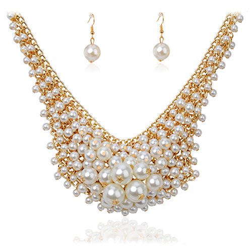 IPINK Fashion Charm Jewelry Pendant Faux Pearl Choker Chunky Statement bib Necklace and Earrings Set