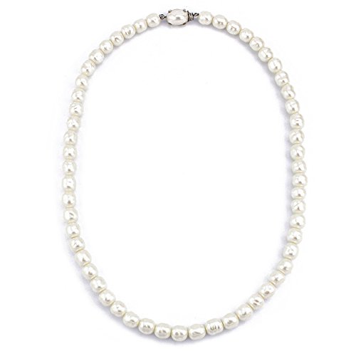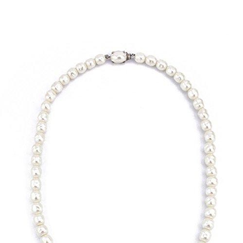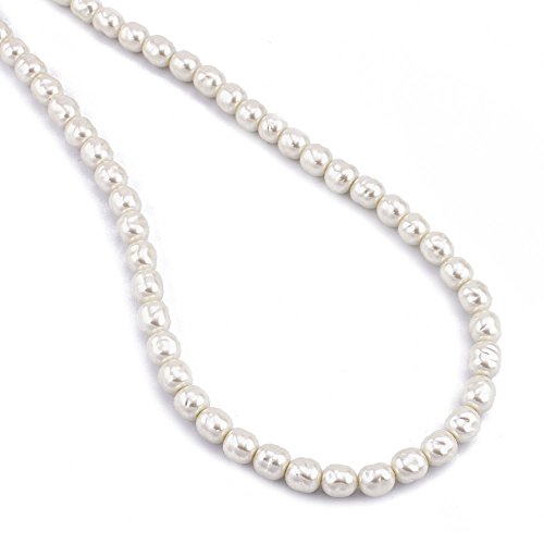 A classic strand of pearls is an elegant look that never goes out of style. These lustrous pearls are so natural looking it is hard to believe they are glass. The single 24-inch matinee-length strand makes a dramatic fashion statement than shorter lengths and is ideal for illuminating the face. Wear them on their own, or go with the trend of layering and easily combine them with other necklaces of different materials, lengths and colors for a personal look. The glass pearl necklace fastens securely with a box and tongue clasp.