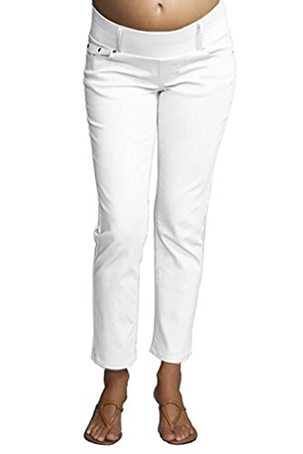 We love these new ankle skinny jeans. Underbelly fit with super soft and stretchy waistband that can be worn during any stage of pregnancy. Great transition pants for after the baby is born too, as there is no visible maternity band. Ankle length. Sizing (order pre-pregnancy size) XS=2-4 S=4-6 M=8-10 L=10-12 XL=12-14 26" Inseam Cotton/lycra. Machine wash.Feature